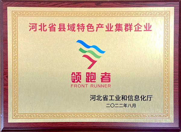 获得河北省工业和信息化厅“河北省县域特色产业集群企业领跑者”称号